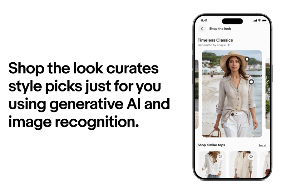 eBay新推出“选购推荐造型(Shop the look)”功能,这是一项基于生成式人工智能的新增强功能。该功能将以沉浸式轮播方式展示eBay根据买家的购物记录量身定制的造型搭配,此外还包含互动热点,展示类似的物品和服装搭配灵感。买家点击页面将看到一系列符合其风格偏好的服装推荐,包括服饰、二手服饰和奢侈品,这将促进更多的销售。