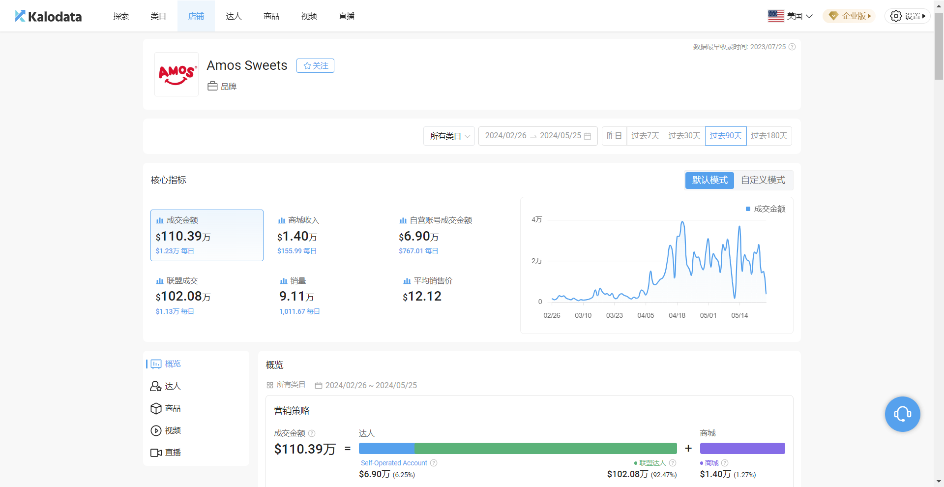 TikTok Amos Sweets致力于为世界提供新颖、美味、创新的零食。在TikTok美区小店销售增长明显,最高单日销量超4000件,热门产品可剥水果软糖近30天销量达4.32万件,GMV达53.21万美金。自营账号在TikTok圈粉8000,获得1.5万点赞,通过定期直播带货和产品视频发布,持续提升品牌曝光和影响力。