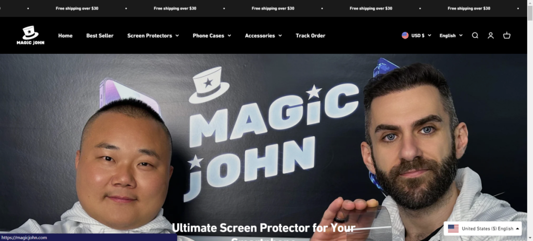 MagicJohn 品牌独立站内,除了售卖各种型号手机钢化膜外,还售卖安卓和苹果的多款手机壳及其他手机配件,多条产品线,也进一步扩大品牌销量与客户群体。