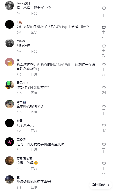通过前后两款产品的测评对比,第二款钢化膜凭借便捷操作及防刮耐损等特点成功收获无数粉丝。在视频下方评论区中,不少用户直言想要购买一个,还有部分用户提出需要防蓝光、防偷窥功能的膜。