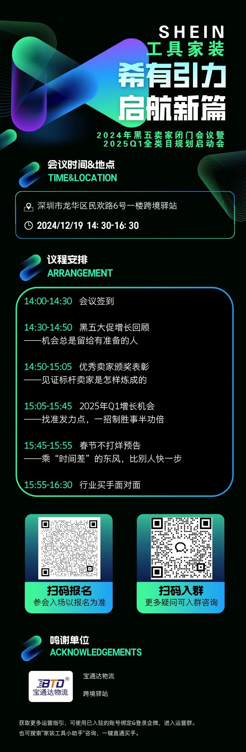 【主题】SHEIN工具家装 | 2024年黑五卖家闭门会议暨2025Q1全类目规划启动会