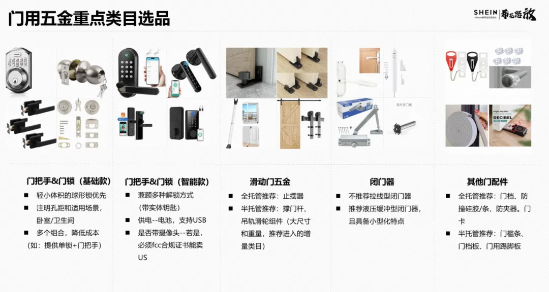 来自SHEIN平台官方团队的洞察显示,简约时尚建材、易安装的厨卫浴产品、智能家居安防产品,更受用户青睐,市场需求持续上涨。同时,实用的工具也成为了必不可少的类目之一,提供了更多的便捷与实用性,满足了日益增长的家庭生活需求,“黑五”落潮之后,在25年Q1的市场增长空间仍十分可观。