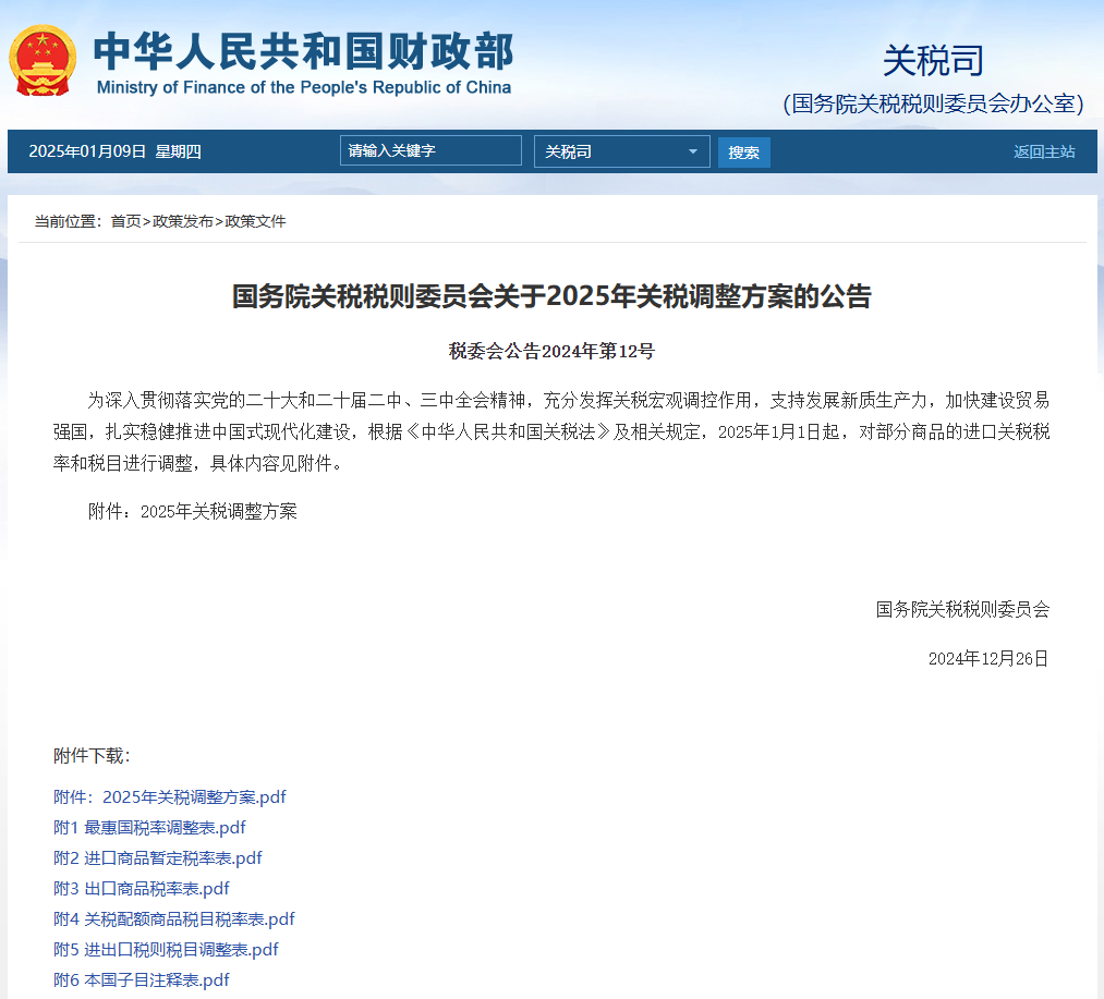 截图来源于国务院关税税则委员会