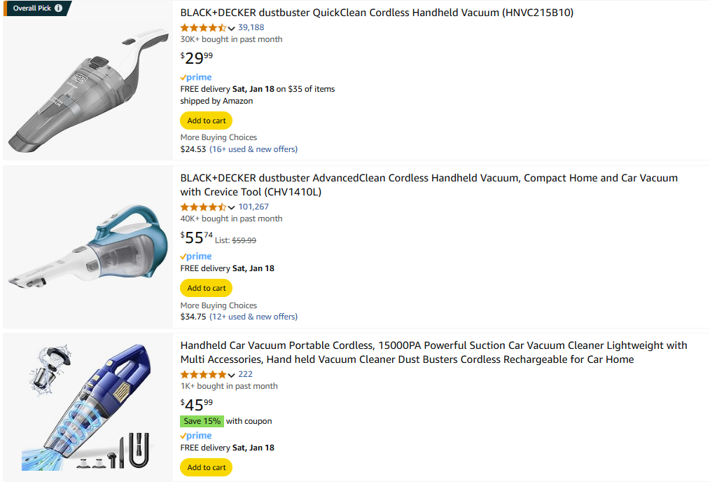 图源:谷歌在产品功能方面,卖家需持续投入研发,推出具备更强吸力、更长续航时间、更轻便设计的手持吸尘器,并引入智能感应、自动清洁模式等功能,以提高用户体验。