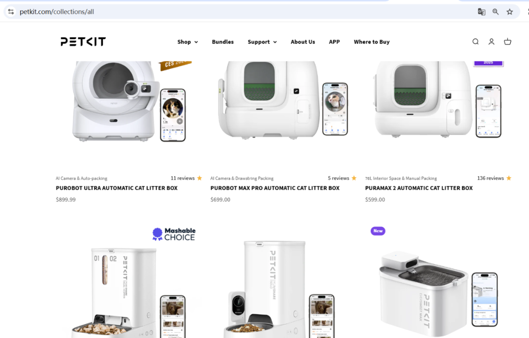 考虑到国外宠物家庭的喂养方式和需求,品牌海外市场以自动饮水机、智能喂食器、自动猫砂盆作为核心产品,在社交媒体上进行布局推广。