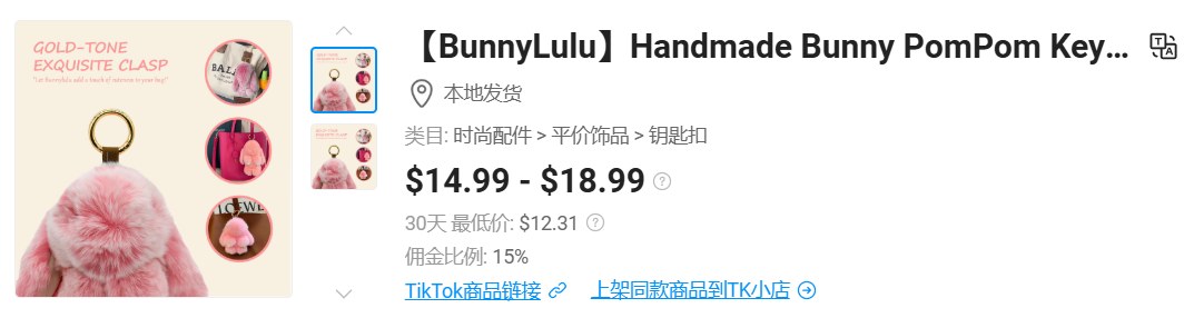 彩蛋一直是复活节最具代表性的元素,尤其是在孩子们的“复活节彩蛋狩猎”活动中,彩蛋玩具的需求居高不下。今年TikTok上的热销彩蛋玩具不仅颜色丰富,还配有贴纸装饰,迎合了孩子们的喜好。除了彩蛋,带有“复活节兔”元素的产品也在走红,一款兔子绒球钥匙扣在2月中旬销量开始飙升,日销量一度突破2600件,成为TikTok美区的热门商品。