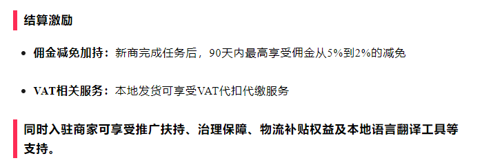 不仅如此,平台还推出物流补贴、本地化治理支持,以及客服翻译工具,确保你不仅能卖得出去,还能把用户服务好。说白了,这波是平台主动让利,把门槛调低、护栏架好,就等你来跑出成绩。