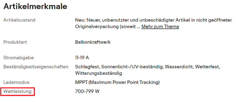 ★太阳能板产品,在Item Specific中,确保正确填写Wattleistung对应的功率。