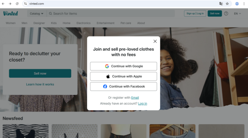 Vinted有网页端和APP应用,为了便于管理,我们选择网页端注册