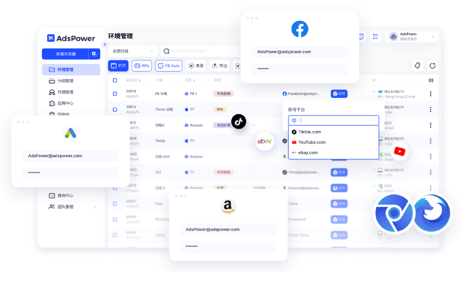 ① AdsPower(指纹浏览器,能够统一管理速卖通、亚马逊、eBay、Shopify 等多个电商平台的店铺 。每个账号都在独立隔离的环境中运行,有效降低账号被封禁的风险,让卖家在不同市场中都能顺畅运营):https://share.adspower.net/aikuajing