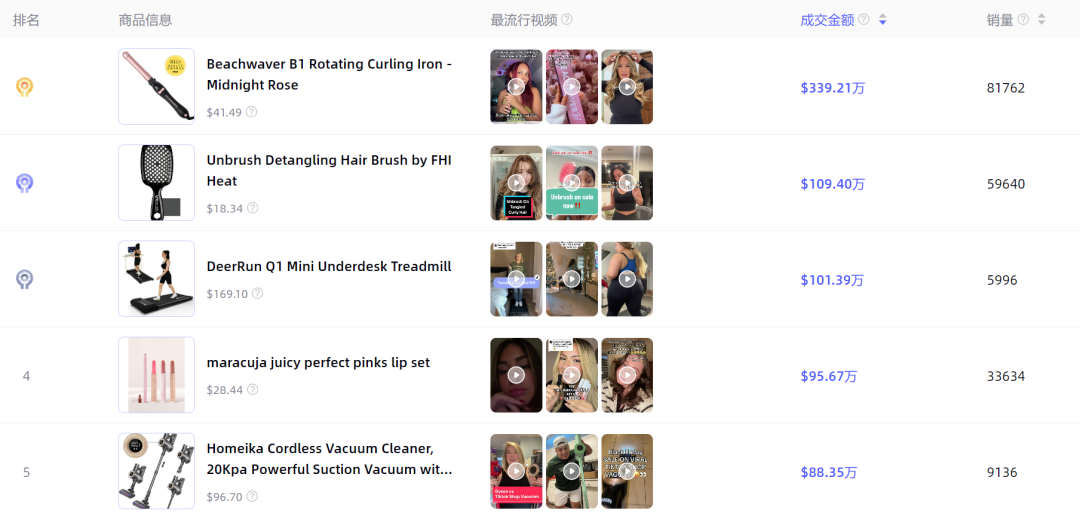 根据TK数据分析网站kalodata的数据,在过去的7天中,Beachwaver 电卷棒成为TikTok Shop美国市场上销售额排名第一的产品,总GMV为339万美元,远远超过排名第二的产品,后者只有109万美元的总GMV。