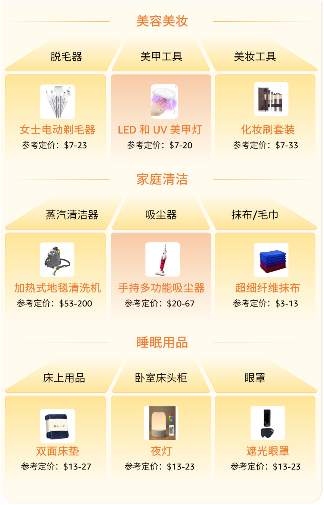 日本职场女性生活非常忙碌,但同时也希望自己保持能够精致状态。下面有两款畅销产品尤其能体现她们的需求——美甲灯和手持多功能吸尘器。前者能够让她们在家自行绘制美甲,节省大量时间。后者不仅能清除地板上的灰尘,也能清洁台面,是个实用、高性价比的工具。