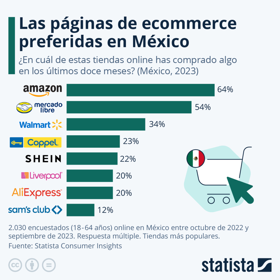 拉美另一大电商市场是墨西哥,Statista发布的调查结果显示,
